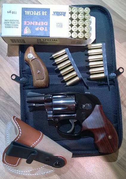 Продам или поменяю компактный револьвер Smith and Wesson model 38 Airweight Bodyguard калибра 38 special. Состояние отличное, такое чувство, что из него особо вообще не стреляли и его не носили. Отличное оружие как для ношения, так и для коллекции. На револьвере установлены новая рукоятка из красного дерева, всё остальное оригинальное. В комплекте сумка для скрытого хранения и переноски, кожаная кобура (IWB), оригинальная рукоятка с совпадающим с револьвером номером, две ленты для скоростного заряжания (Bianchi speed strips), 50 патронов Fiocchi Black Mamba.